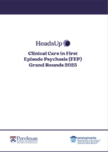 The HeadsUp 2026 Clinical Care in Early Psychosis Grand Rounds Series offers an intensive (54-hour) exploration of clinical care avenues via Dialectical Behavior Therapy (DBT) for Psychosis and Motivational Interviewing (MI) for providers of First Episode Psychosis care. Sessions will be held virtually via Penn Zoom Events over the course of 27 business days via a grand-rounds format, weekly on Tuesdays or Fridays, from February to August 2026. There will be no cost to attend – sessions are funded through the Community Mental Health Services.